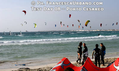 Il Test Day 07 si è rivelato l'evento più importante e spettacolare del kiteboard Italiano, la spettacolarità è stata data dall'enorme numero di praticanti accorsi, indecifrabile la quantità di ali e vele che hanno colorato il mare e il cielo dello spot di Porto Cesareo. Il tratto di costa era letteralmente invaso dai rider che sfrecciavano nella baia. La formula del suo successo è stata sicuramente quella dell'evento a chiamata, questo ha permesso di testare effettivamente i nuovi materiali delle migliori marche presenti oggi sul mercato italiano e di non limitarsi ad una semplice fiera espositiva, è stato cosi possibile testare in una sola volta tutte le attrezzature a disposizione e di poter così provare e paragonare di persona i vari prodotti in commercio.