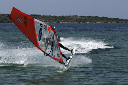 Nella seconda sessione è tutto più difficile. Una leggerissima brezza di grecale cioppa leggermente la superficie della splendida baia di Porto Liscia e i riders fanno fatica a partire con la fune. Van der Eyken si esibisce in una bellissima Air Funnel one handed into Funnel eseguita perfettamente e chiusa asciutta. Mattia Fabrizi, Kenny Janssen e Gigi Madeddu non riescono a concludere asciutti i propri tentativi.