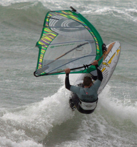 Parte la batteria finale e Francesco è ormai alla quinta batteria consecutiva, i due finalisti partono assieme Rosati comincia con un bel forward, Cappuzzo replica forward ma non apre la vela in atterraggio e con 50 nodi non si scherza e spezza la tavola in due. Sbraccia e chiede aiuto al suo organizzatissimo REEF-Team. Gli portano una tavola nuova. Rosati nel frattenpo si accorge dell'incidente, rallenta il ritmo e quando vede il giovane avversario di nuovo in sella si surfa due onde alla grande e su una stacca uno stilosissimo aerial. Cappuzzo si rimette in riga e supportato dalla spiaggia trova un onda e back loop da manuale.