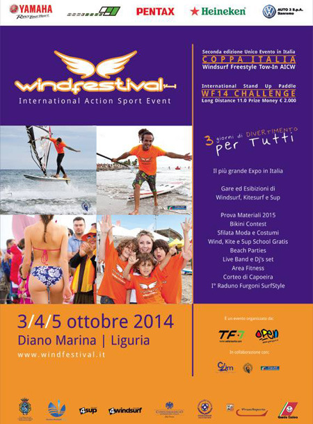 Il Wind Festival si terrà dal 3 al 5 ottobre 2014 sulla sabbia fine di Diano Marina, Riviera dei Fiori, in Liguria di Ponente.